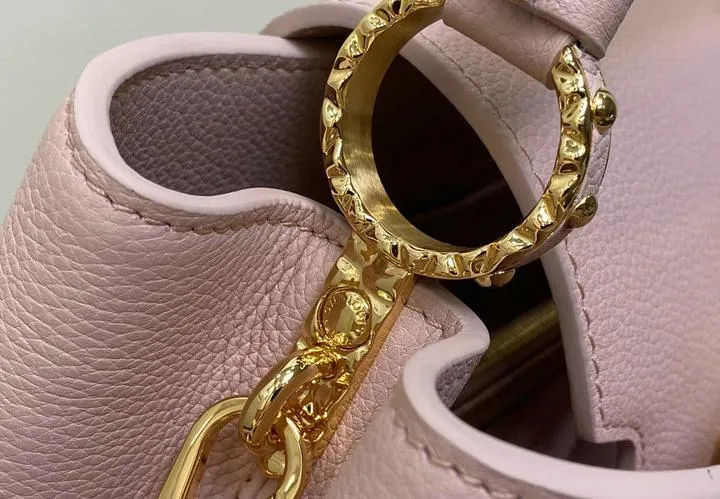 This 1:1 Mirror Replica Capucines East-West Mini Capucines is meticulously crafted to closely match the original Louis Vuitton M24666. Every detail, from the stitching to the logo placement, is carefully replicated. The proportions, silhouette, and design elements mirror the authentic piece, making it difficult to distinguish from the genuine article at a glance.