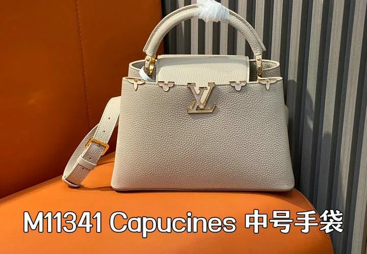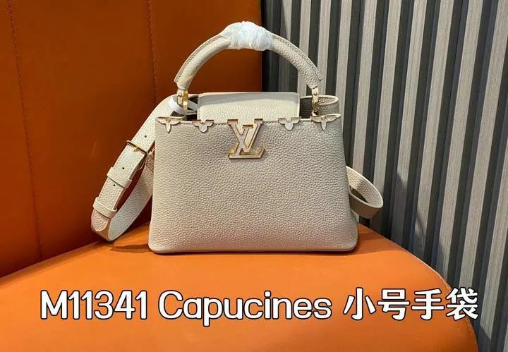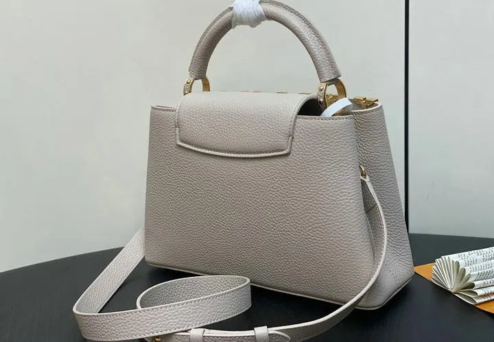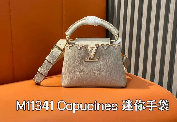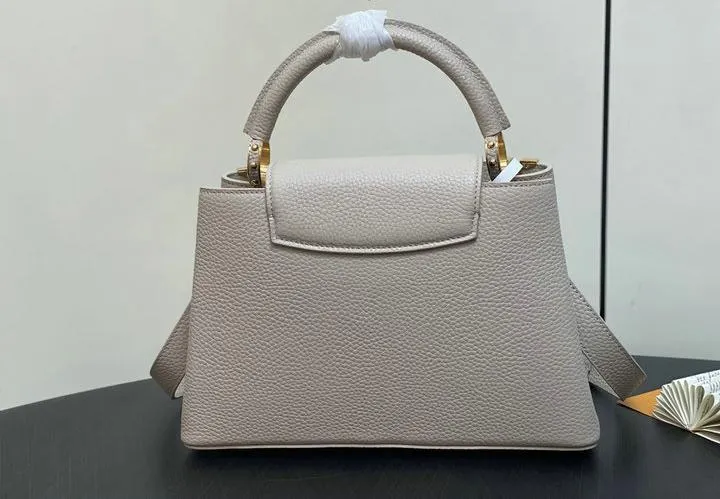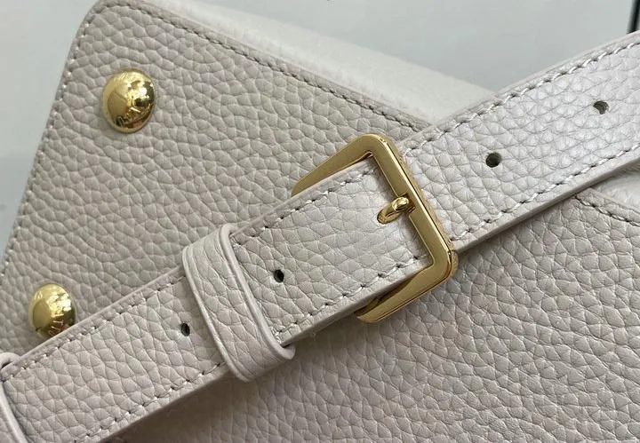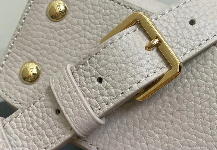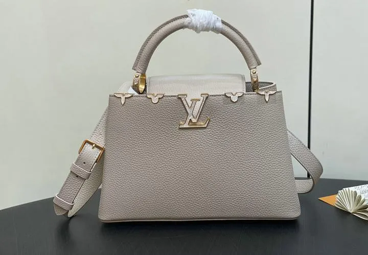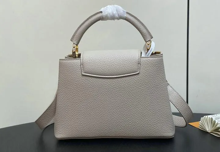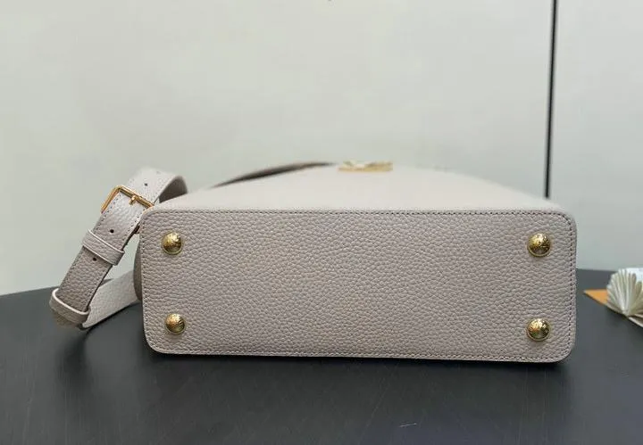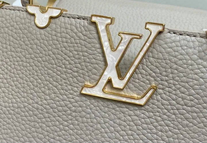 This replica Capucines Mini uses genuine leather to closely replicate the texture and suppleness of the authentic Louis Vuitton bag. The hardware is finished in high-quality polished metal, ensuring durability and a luxurious look. Every element, from the clasps to the logo, is carefully chosen to echo the original’s premium standards.