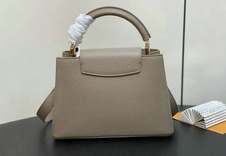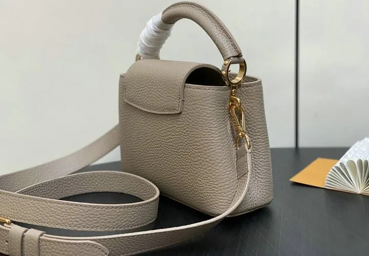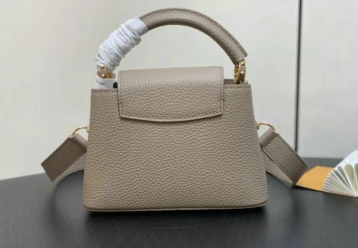 While the exact dimensions are not specified, this replica mirror Taurillon adheres to the standard sizing of the Capucines model, making it suitable for daily use or special occasions. The bag is designed to be comfortable to carry, with proportions that complement both casual and formal attire, closely matching the original’s versatile silhouette.