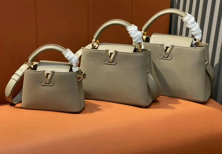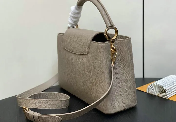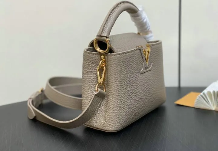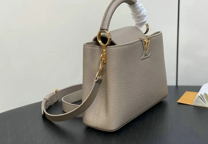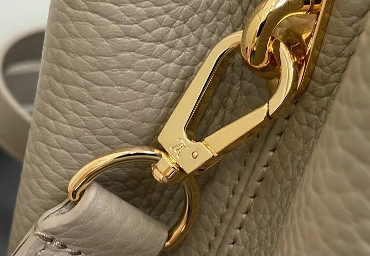 This replica is crafted with meticulous attention to detail, closely mirroring the original Louis Vuitton Capucines Bag in both appearance and construction. From the stitching to the logo placement, every aspect is carefully replicated to ensure authenticity in look and feel, making it an excellent choice for those seeking high-quality resemblance.