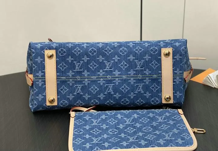 The replica features high-quality monogram denim paired with genuine leather trims, closely matching the original’s texture and finish. All hardware, including zippers and clasps, is made from durable, gold-toned metal, providing both longevity and an authentic appearance. Every component is selected to ensure an authentic touch and lasting performance.