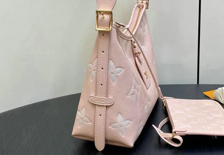 The Louis Vuitton replica CarryAll PM Bag measures 29 x 24 x 12 cm, providing ample space for essentials while maintaining a sleek profile. The adjustable leather strap allows for comfortable shoulder or crossbody wear, making it versatile for daily use or special occasions. Its size and structure ensure a balanced, stylish look when carried.