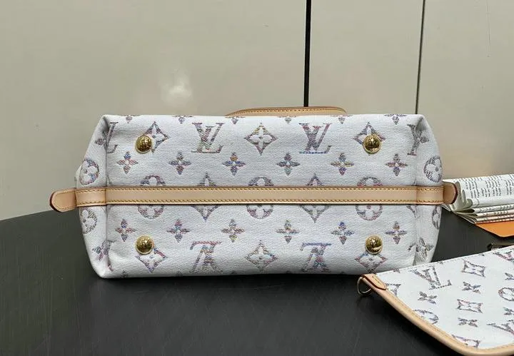 This replica features premium denim fabric paired with genuine cowhide leather trim, closely matching the original’s luxurious feel. The hardware, including zippers and buckles, is rendered in high-quality metal with a polished finish to echo Louis Vuitton’s standards. Every detail, from leather accents to logo placement, reflects the commitment to authenticity and craftsmanship.