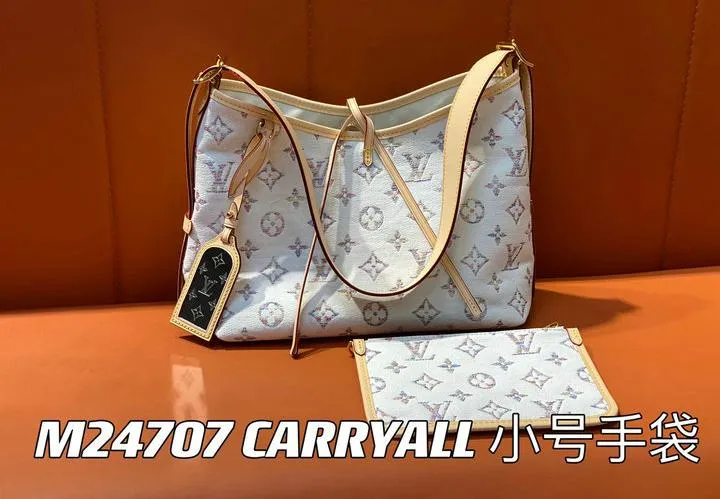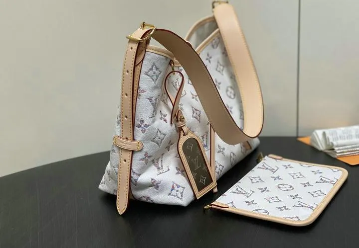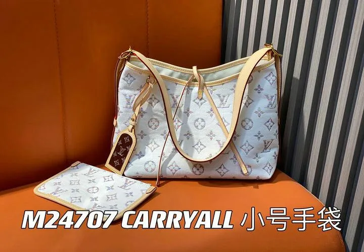 This replica CarryAll PM is presented in elegant packaging, including a branded dust bag for storage and protection. Additional accessories, such as care cards and tags, are included to enhance the unboxing experience and provide a luxury feel. The thoughtful packaging mirrors what you would expect from a genuine Louis Vuitton purchase.