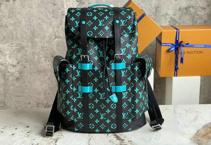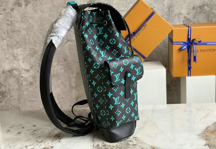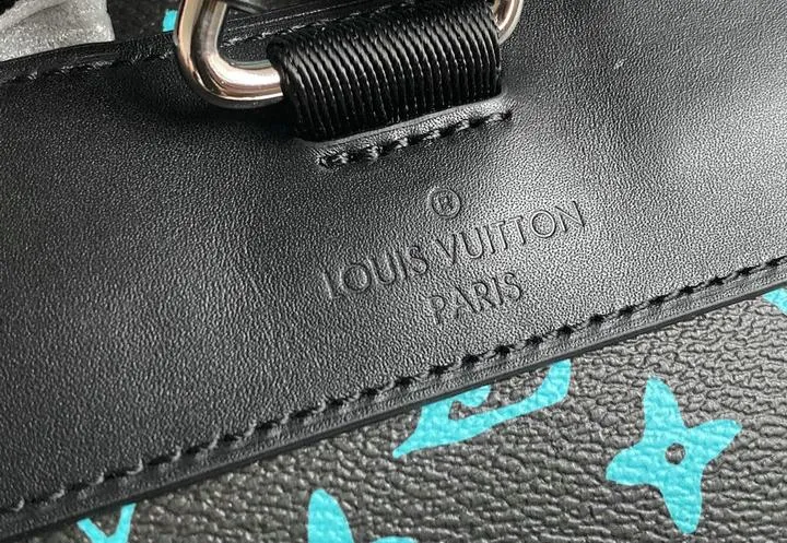 The replica reproduces the striking black-and-turquoise Monogram canvas in the exact Pantone Louis Vuitton used for its runway capsule. Stitch density, flap curvature, and buckle positioning follow the original Christopher MM blueprint, so the bag is virtually indistinguishable beside the authentic version—even under close inspection of grain texture and logo embossing.
