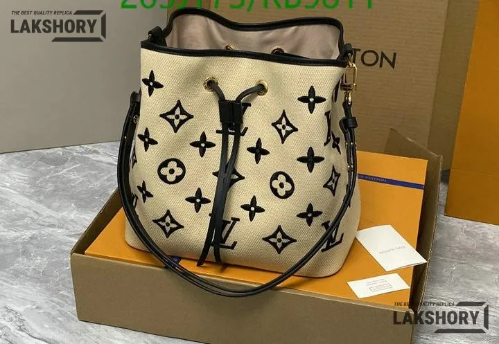 Louis Vuitton 1:1 Mirror Replica Cotton Monogram Embroidered Neonoe MM 26CM/10.2IN