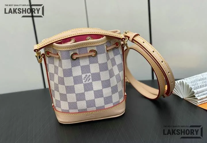 Louis Vuitton 1:1 Mirror Replica Damier Azur Vivienne Sac Nano Noe Dragon Fruit Pink 16CM/6.3IN
