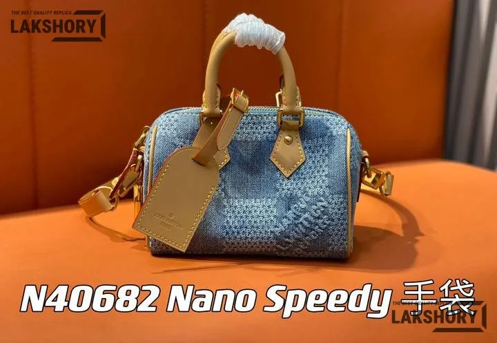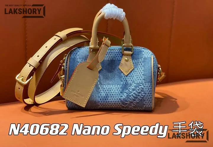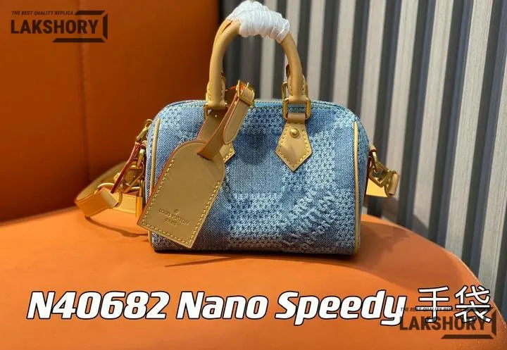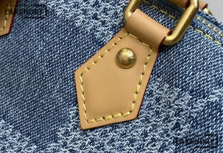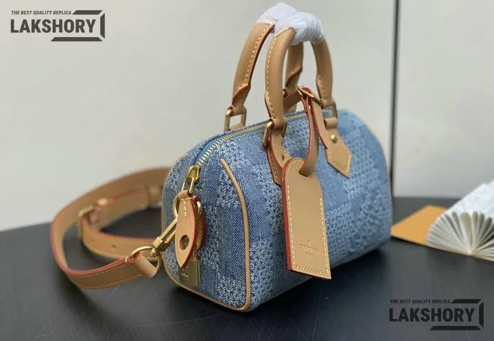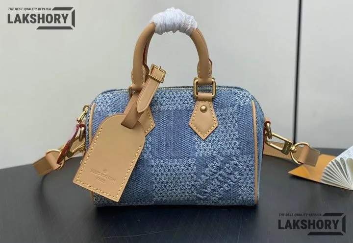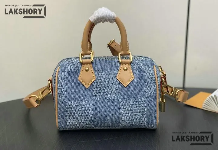 Louis Vuitton 1:1 Mirror Replica Damier Denim 3D Speedy Bandouliere 18 Bleu 16CM/6.3IN