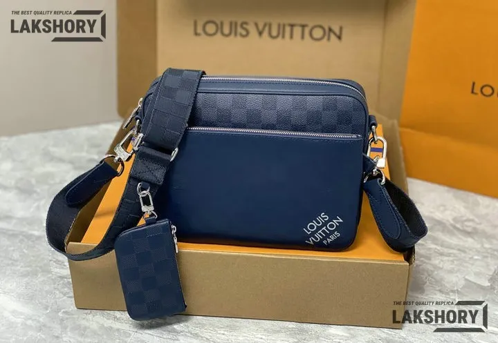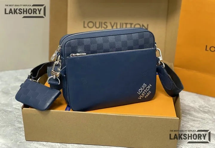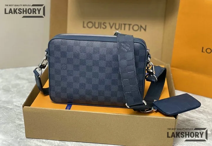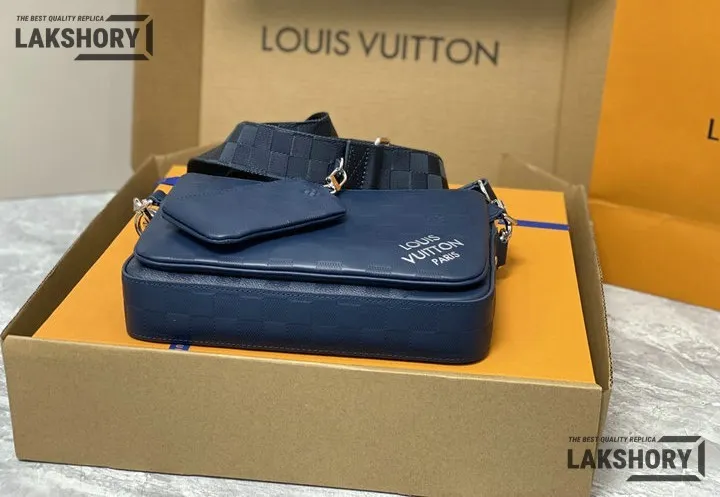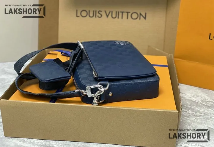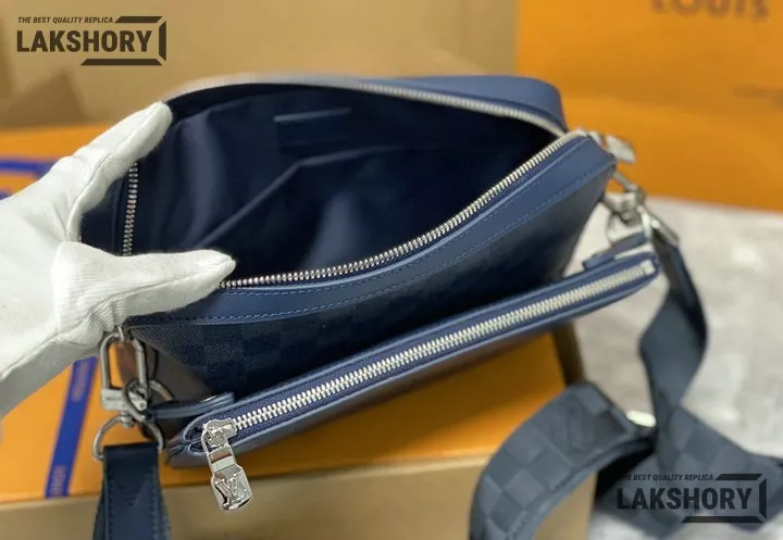 Louis Vuitton 1:1 Mirror Replica Damier Graphite Infini 3D Trio Messenger Blue 25CM/9.8IN