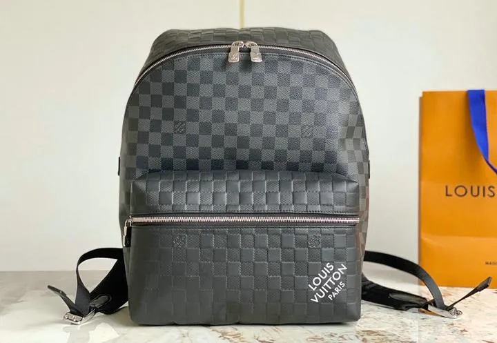 The replica backpack measures approximately 30 x 40 x 20 cm, aligning precisely with the original Discovery Backpack PM. Its ergonomic straps and lightweight structure ensure comfortable wear throughout the day. It fits snugly on the back and provides ample space for daily essentials, making it both stylish and practical for everyday use.