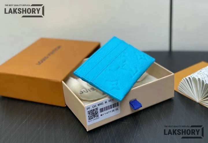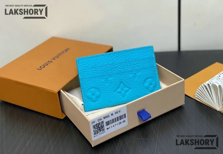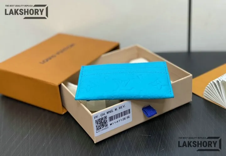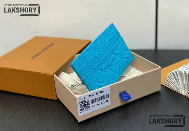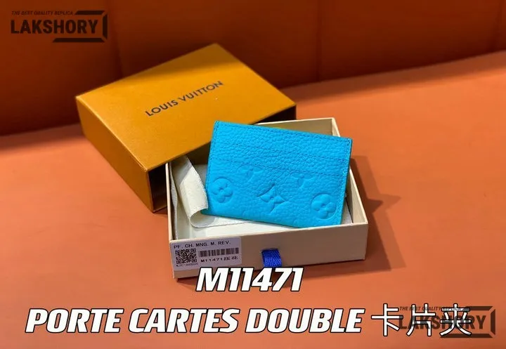 Louis Vuitton 1:1 Mirror Replica Double Card Holder Monogram Eclipse Blue 7CM/2.8IN