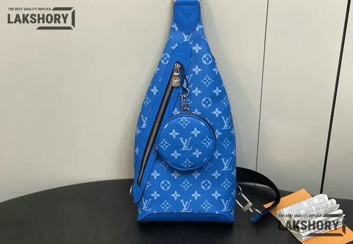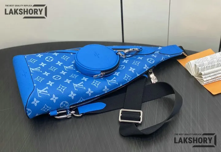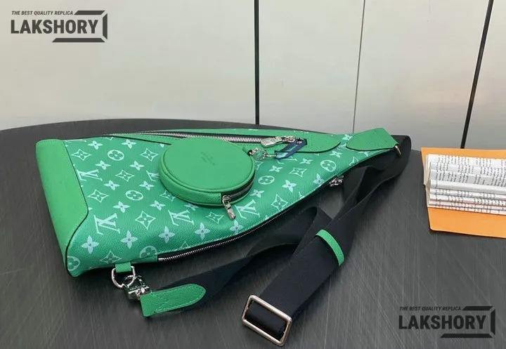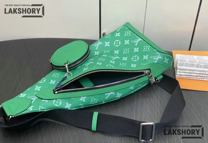 Louis Vuitton 1:1 Mirror Replica Duo Slingbag Taigarama Green Blue 42CM/16.5IN