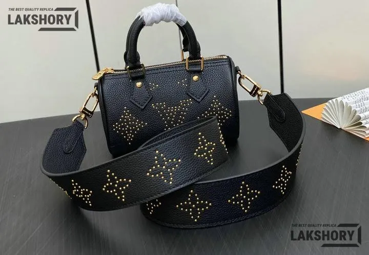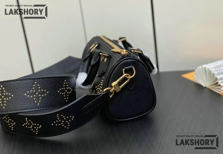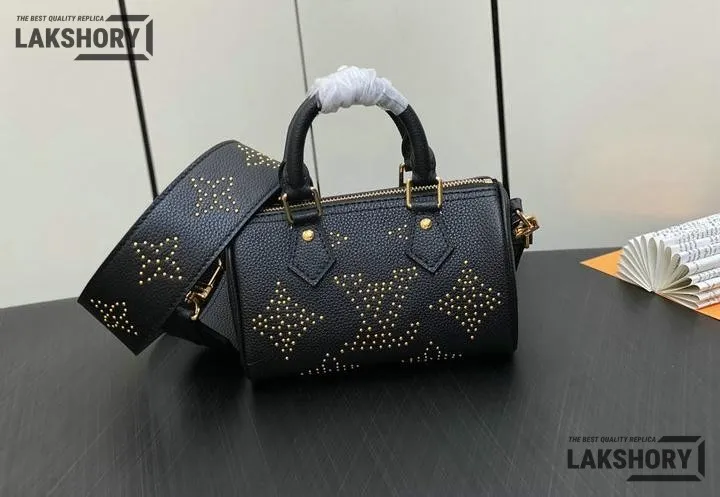 Louis Vuitton 1:1 Mirror Replica Empreinte Giant Studded Nano Speedy Black 16CM/6.3IN