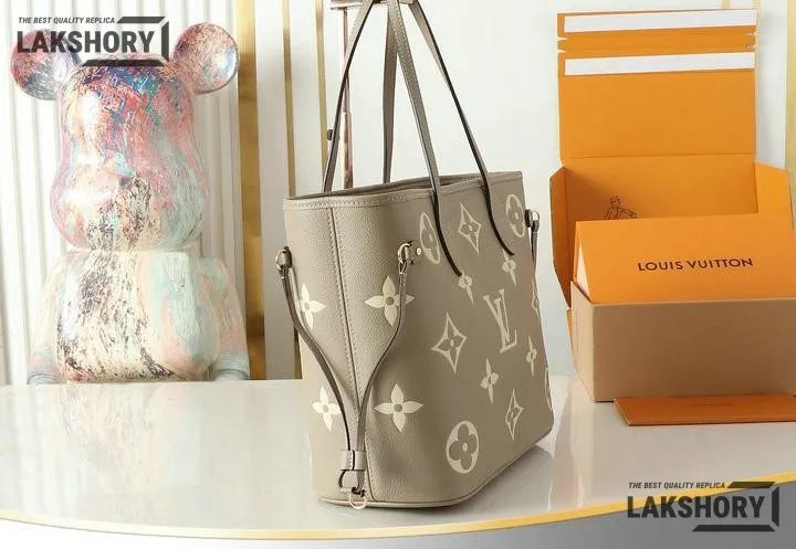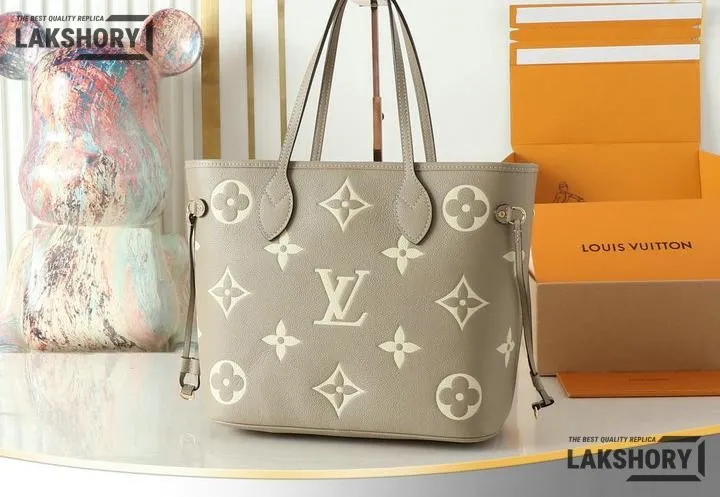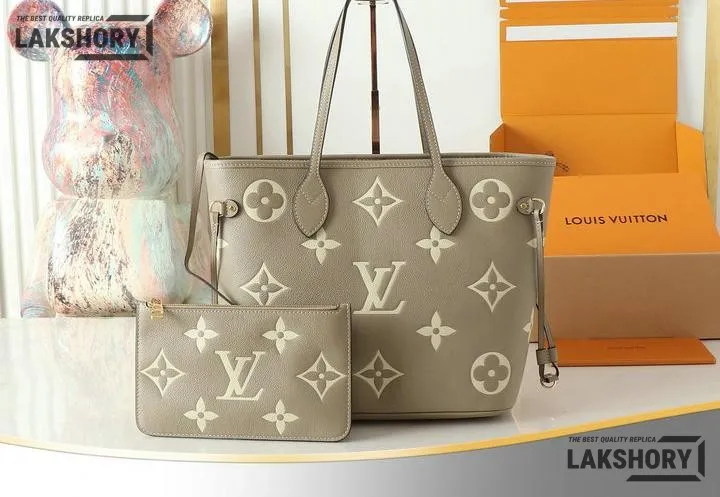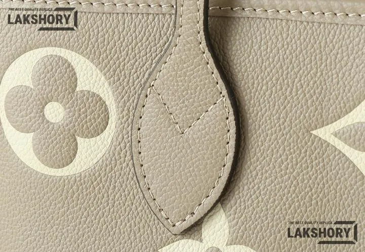Louis Vuitton 1:1 Mirror Replica Empreinte Monogram Neverfull MM Khaki Cream 31CM/12.2IN