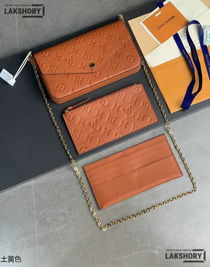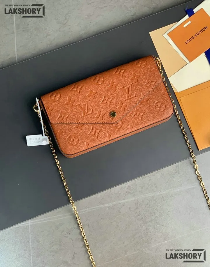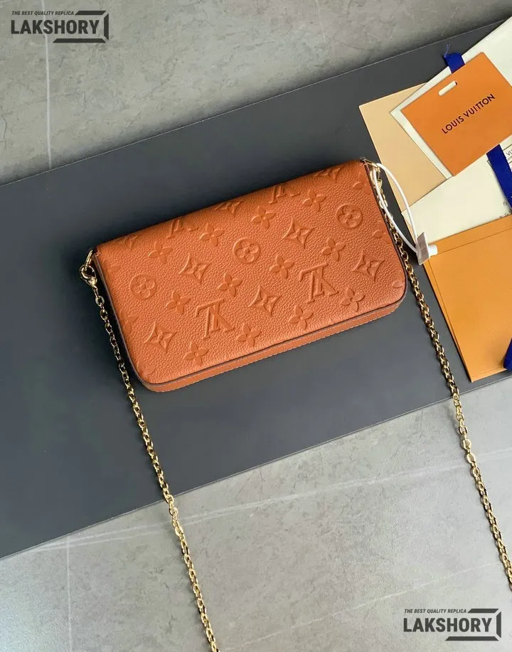 Louis Vuitton 1:1 Mirror Replica Empreinte Pochette Felicie Chain Wallet Cognac 21CM/8.3IN