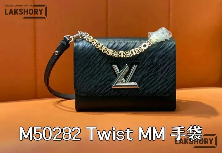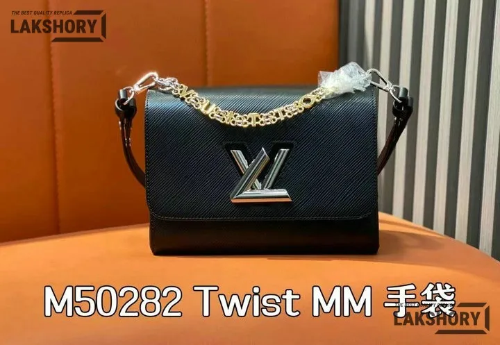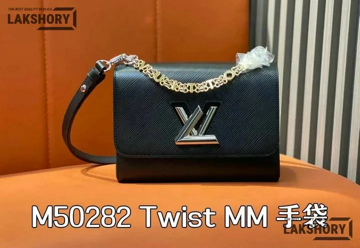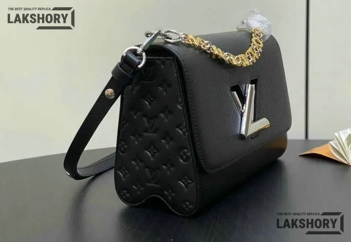 Louis Vuitton 1:1 Mirror Replica Epi Twist Shoulder Bag MM Black 23CM/9.1IN