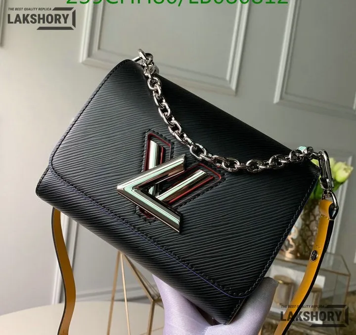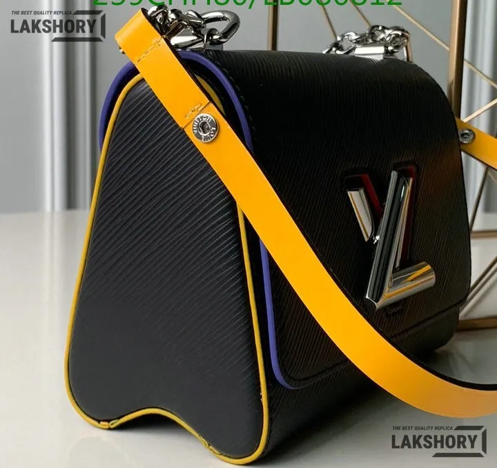 Louis Vuitton 1:1 Mirror Replica Epi Twist Shoulder Bag MM Black Orange 18CM/7.1IN