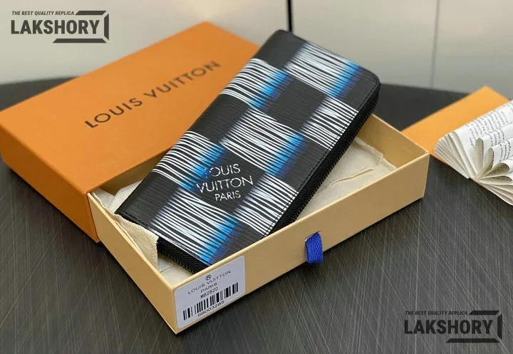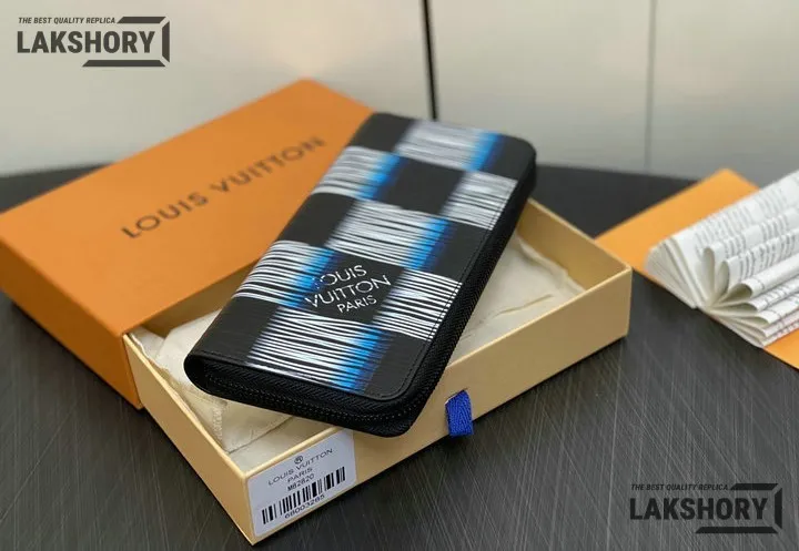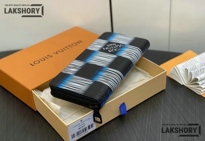 Louis Vuitton 1:1 Mirror Replica Epi XL Damier Rush Zippy Vertical Wallet Blue Moon 19CM/7.5IN