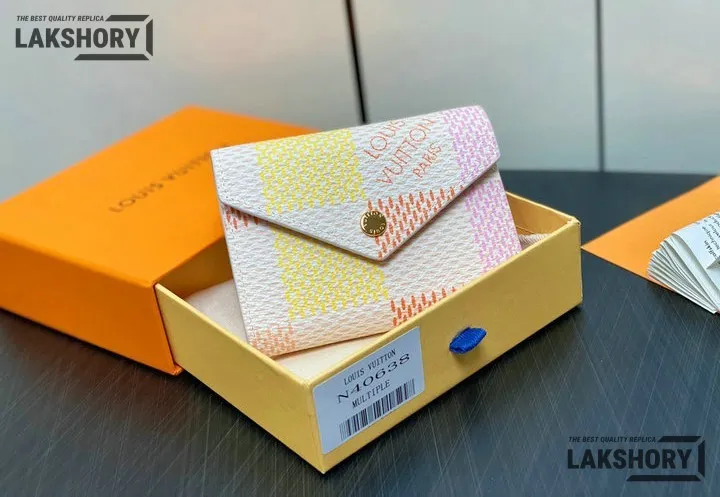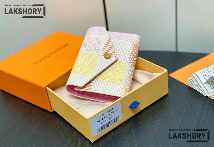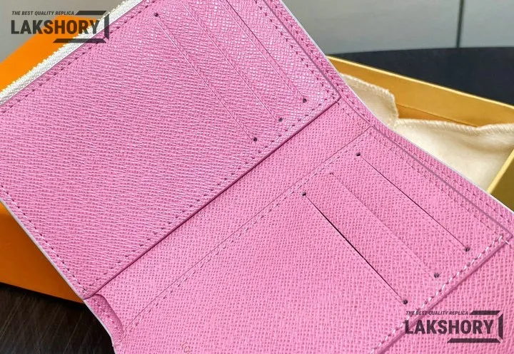 Louis Vuitton 1:1 Mirror Replica Giant Damier Victorine Wallet Peach Pink 12CM/4.7IN