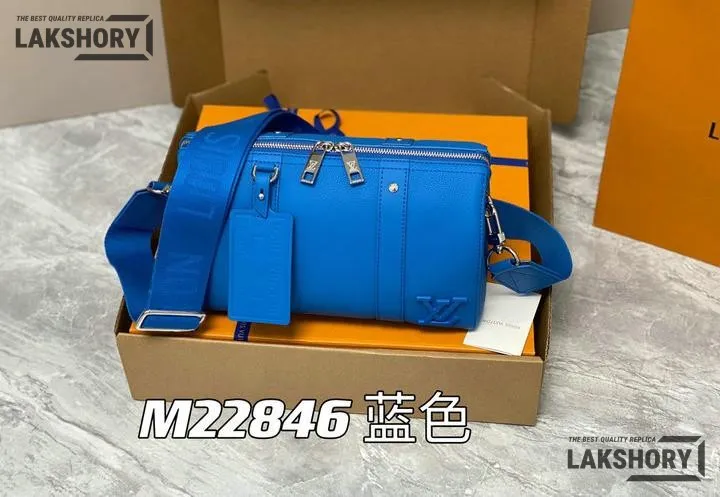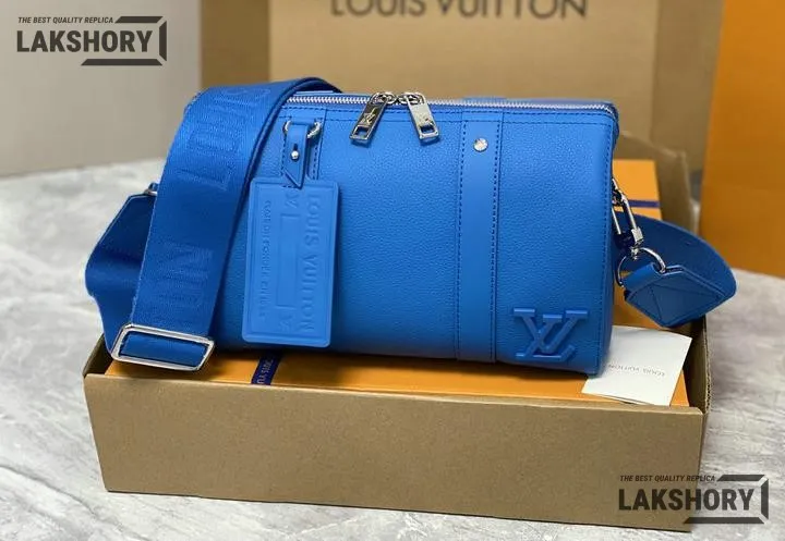 Louis Vuitton 1:1 Mirror Replica Grained Calfskin Aerogram City Keepall Bright Blue 27CM/10.6IN