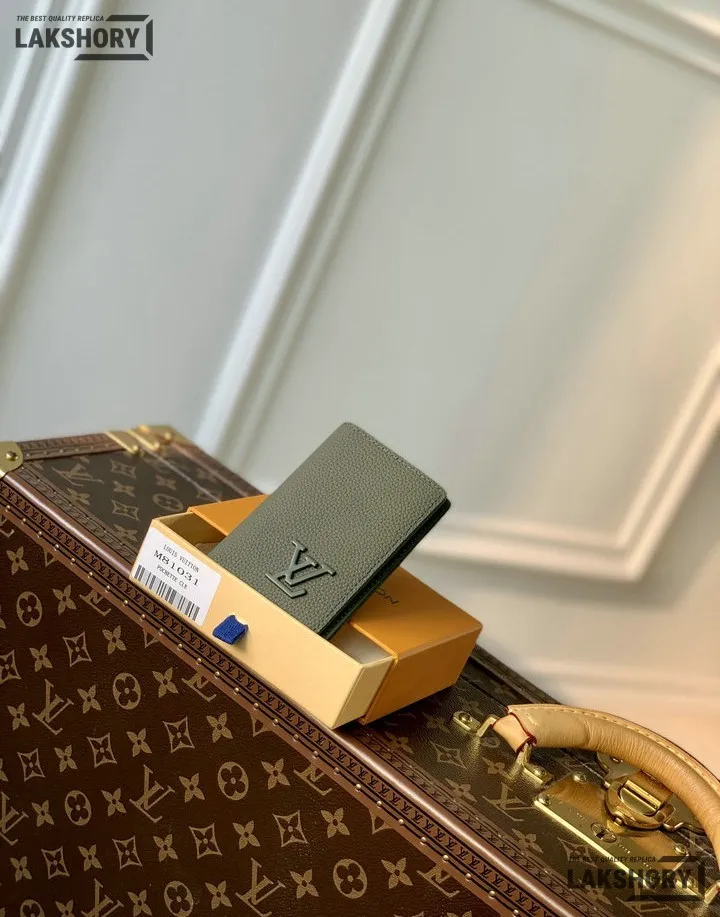 Louis Vuitton 1:1 Mirror Replica Grained Calfskin Aerogram Pocket Organizer Khaki 11CM/4.3IN