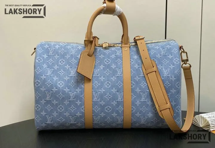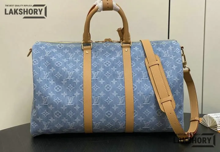 Louis Vuitton 1:1 Mirror Replica Keepall Bandouliere 45 Sky Blue Denim 45CM/17.7IN