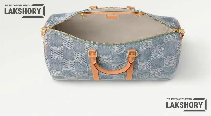 Louis Vuitton 1:1 Mirror Replica Keepall Bandouliere 50 Damier Denim 3D Blue 50CM/19.7IN