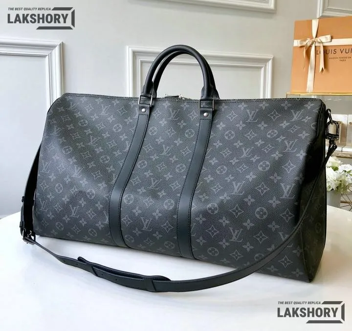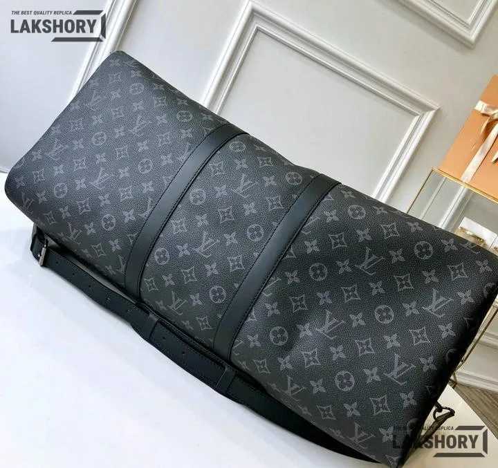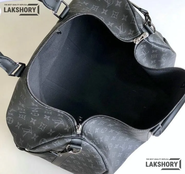 Louis Vuitton 1:1 Mirror Replica Keepall Bandouliere Monogram Eclipse Black/Grey