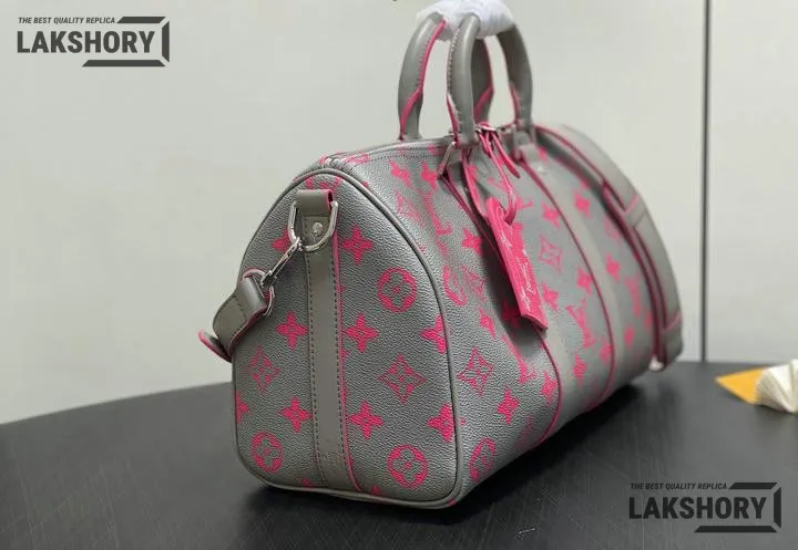 Louis Vuitton 1:1 Mirror Replica Keepall Bandoulire 35 Monogram Gray/Pink 35CM/13.8IN