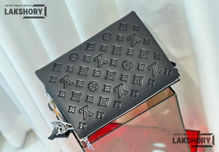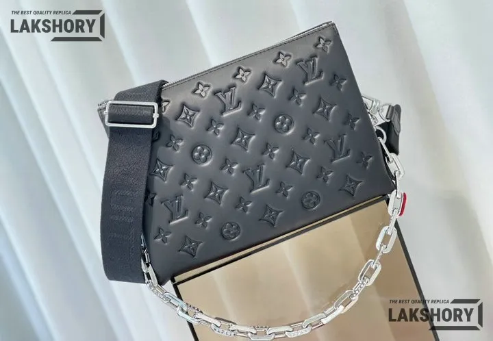 Louis Vuitton 1:1 Mirror Replica Lambskin Embossed Monogram Coussin PM Anthracite 26CM/10.2IN