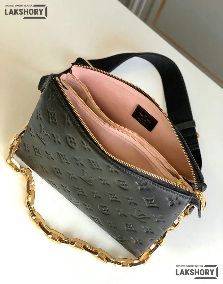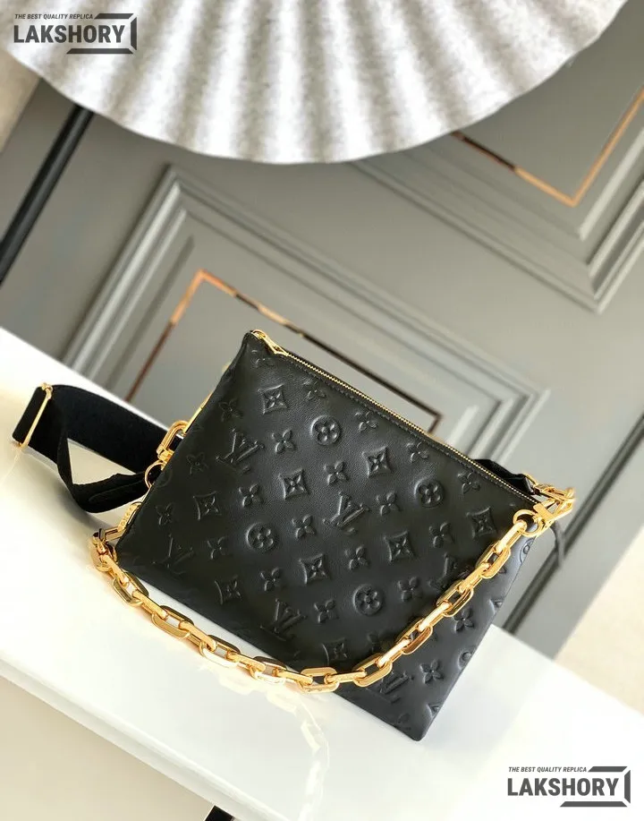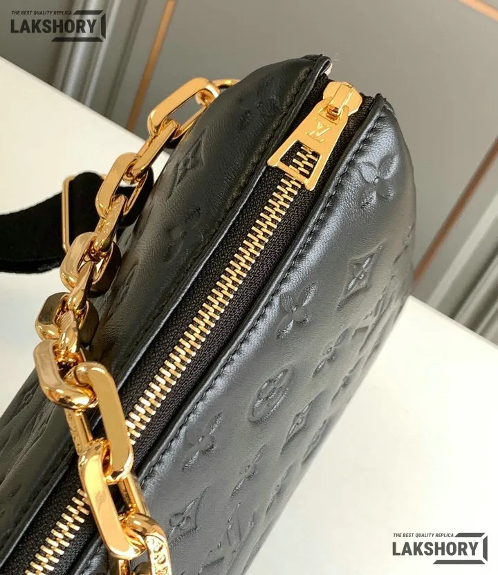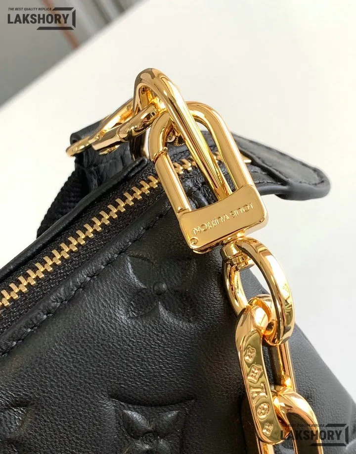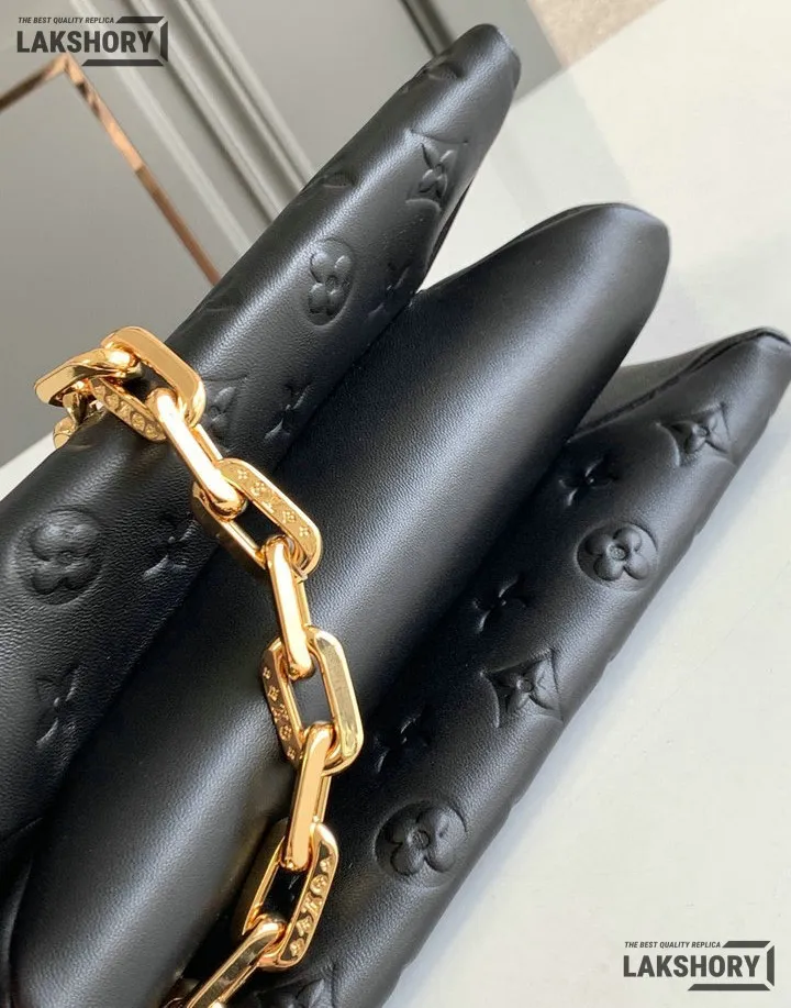 Louis Vuitton 1:1 Mirror Replica Lambskin Embossed Monogram Coussin PM Black 26CM/10.2IN