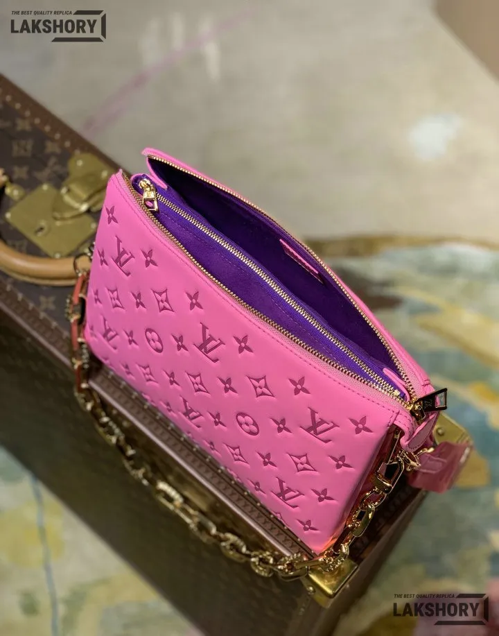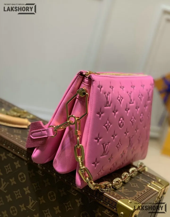 Louis Vuitton 1:1 Mirror Replica Lambskin Embossed Monogram Coussin PM Chain Pink 26CM/10.2IN