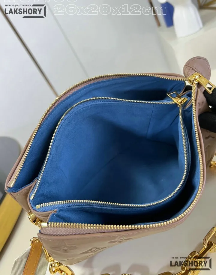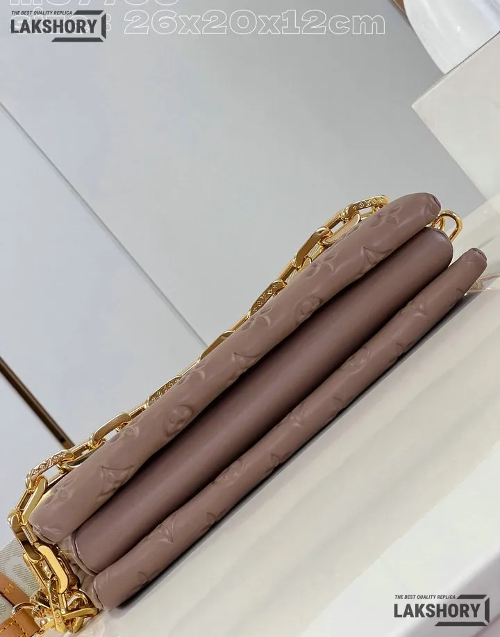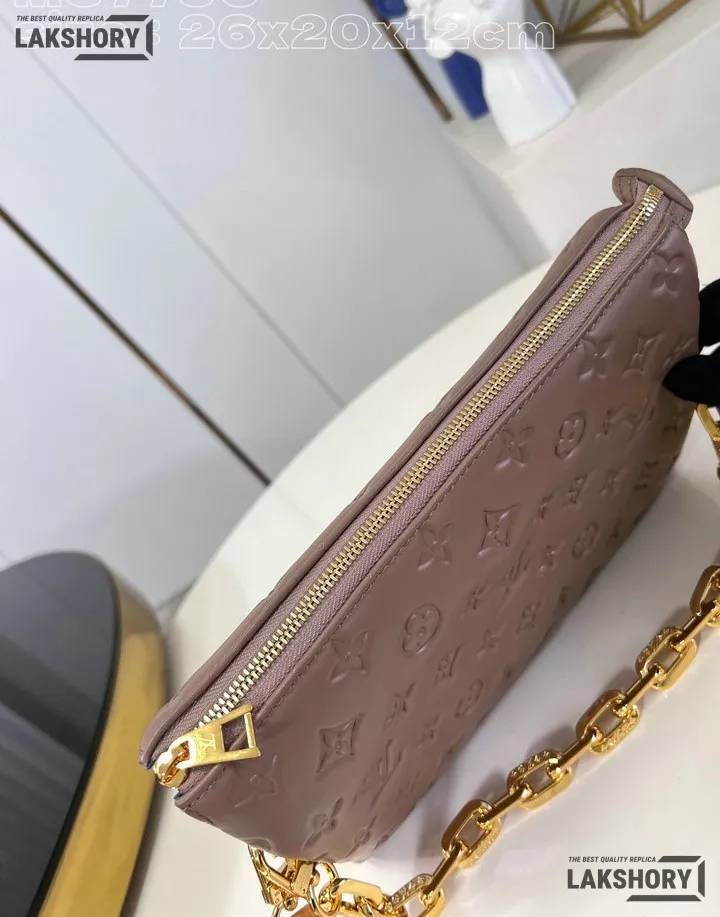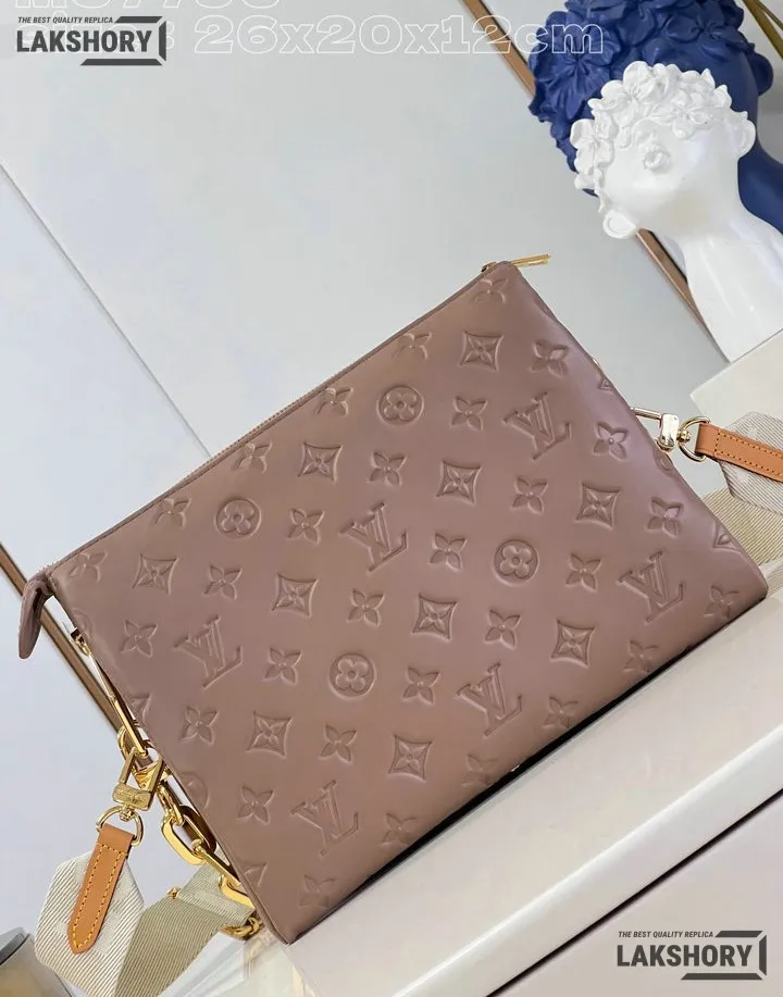 Louis Vuitton 1:1 Mirror Replica Lambskin Embossed Monogram Coussin PM Taupe 26CM/10.2IN