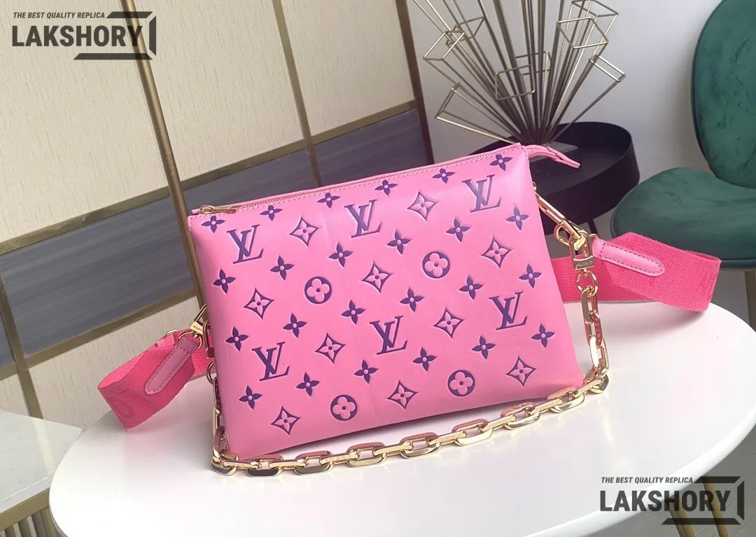 Louis Vuitton 1:1 Mirror Replica Lambskin Embossed Vuittamins Coussin PM Rose Violet 26CM/10.2IN