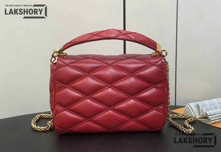 Louis Vuitton 1:1 Mirror Replica Lambskin Malletage Top Handle GO-14 MM Red 23CM/9.1IN