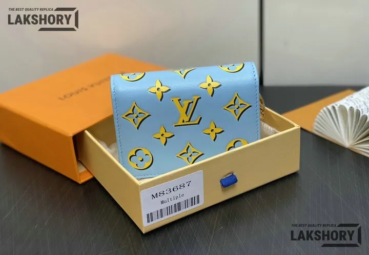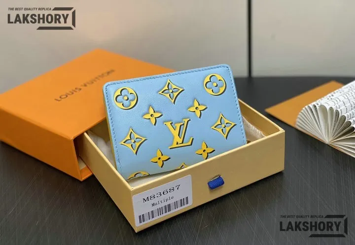 Louis Vuitton 1:1 Mirror Replica Lou Wallet Fashion Leather Baby Blue 9CM/3.5IN
