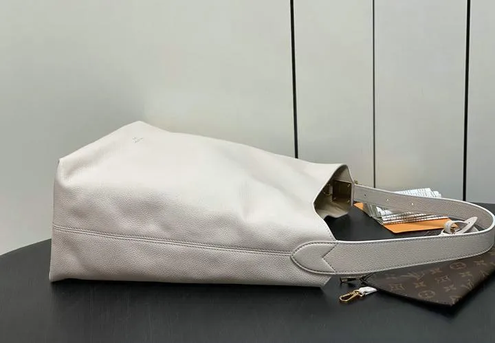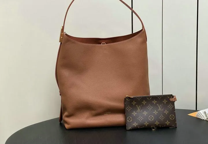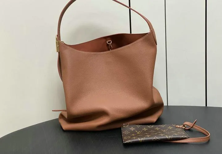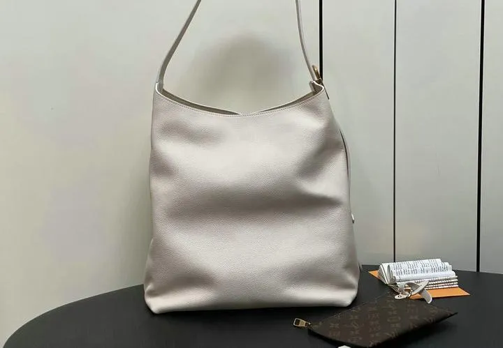 This replica measures 31 x 35 x 18 cm, matching the original’s proportions. Its spacious interior and comfortable shoulder strap make it ideal for daily use, effortlessly fitting essentials while maintaining an elegant silhouette. The hobo style drapes naturally, offering a sophisticated yet relaxed look that complements a variety of outfits.
