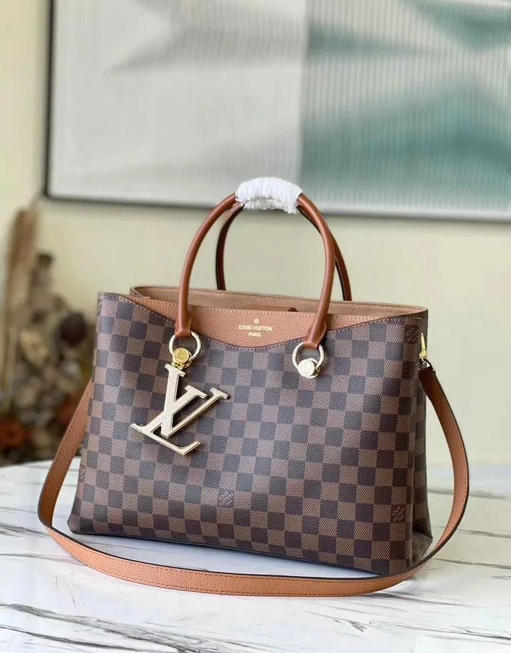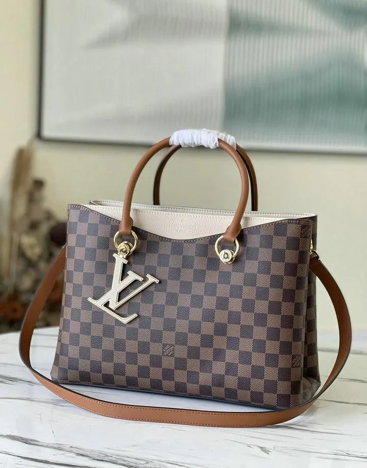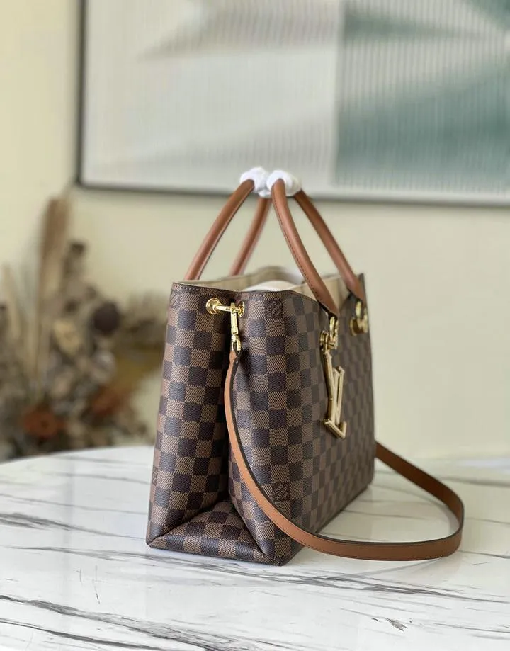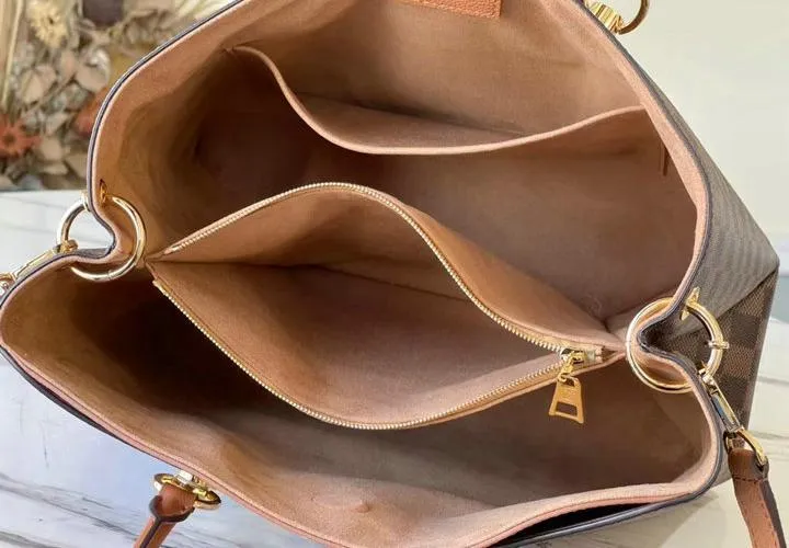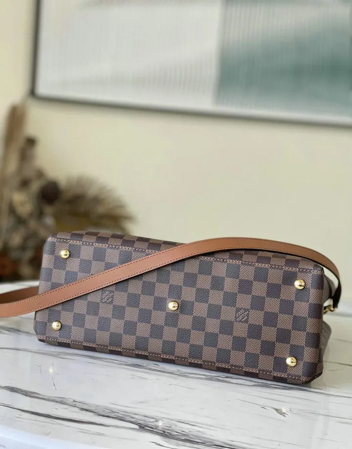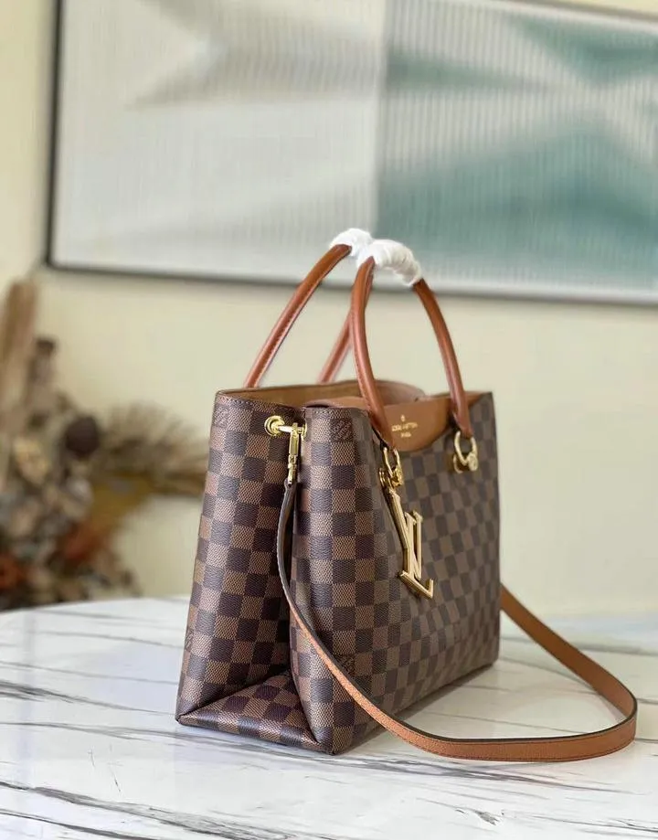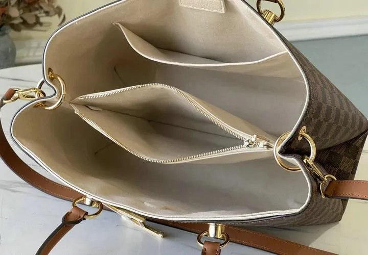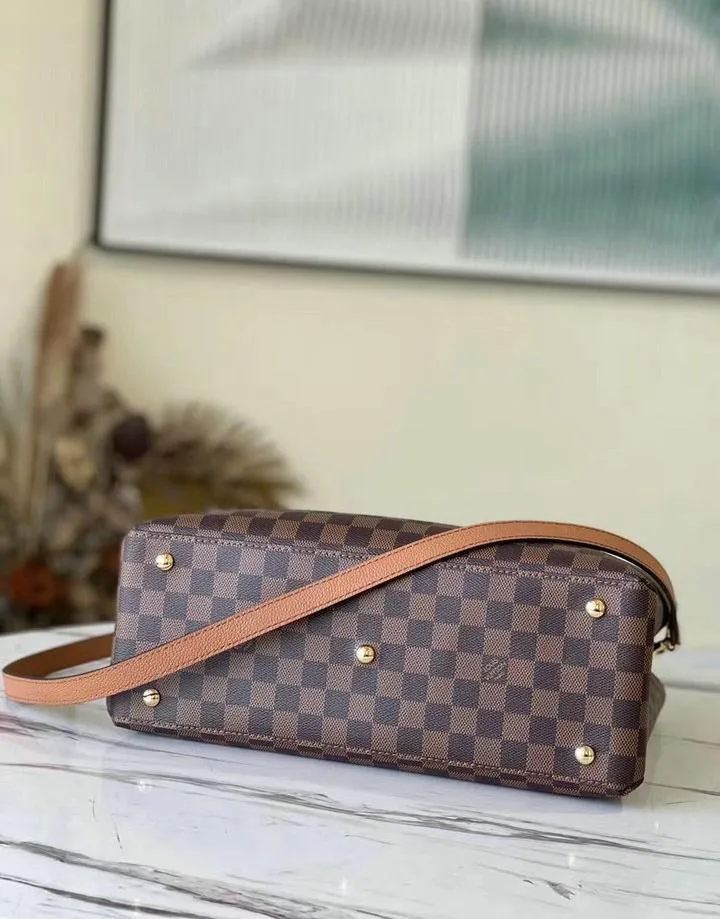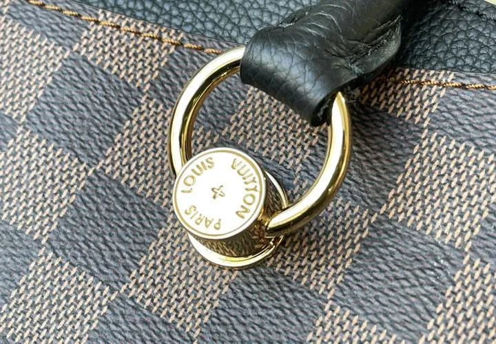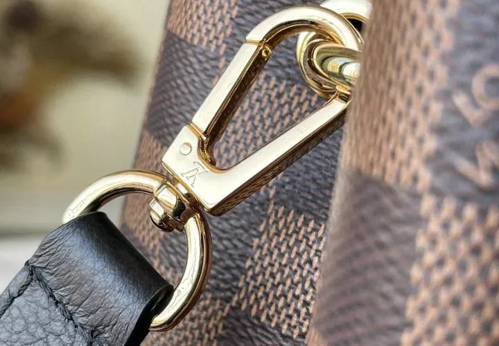 The bag is crafted from high-quality Damier Ebene plaid canvas paired with genuine leather accents, replicating the luxurious feel of the original. The hardware features polished finishes that mimic the look and weight of authentic Louis Vuitton pieces, providing both durability and an elegant, premium touch throughout the design.