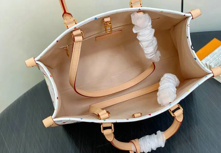 The Louis Vuitton 1:1 Mirror Replica LV x TM OnTheGo MM measures approximately 35cm x 27cm x 14cm. These dimensions faithfully replicate the original, offering ample space for daily essentials. The bag can be comfortably carried by hand or over the shoulder, making it versatile for various occasions and daily use.