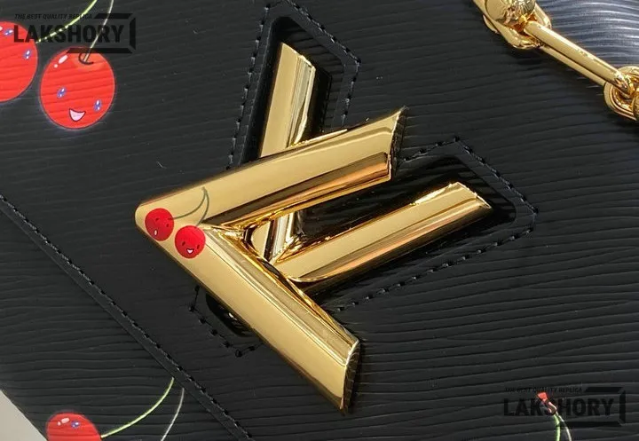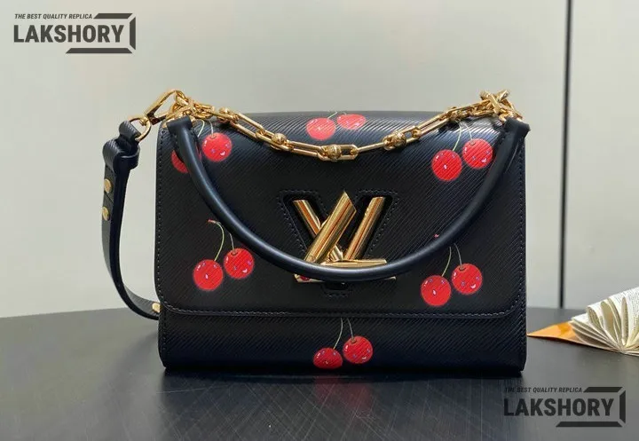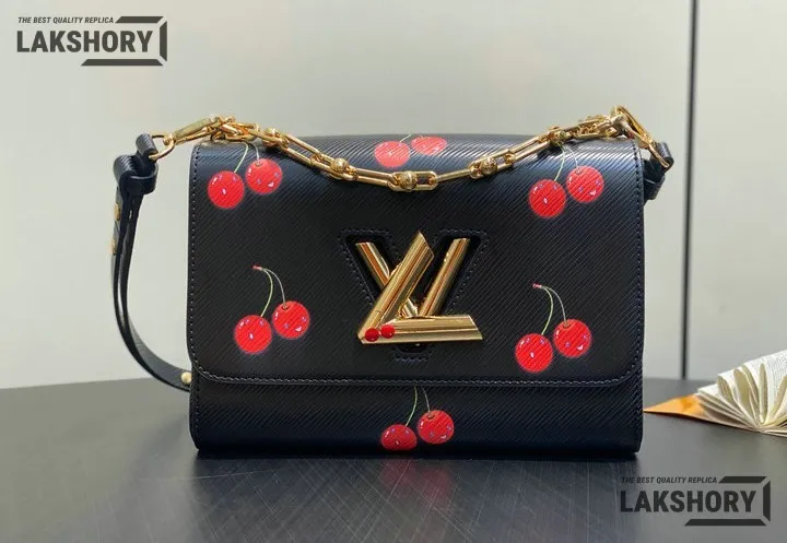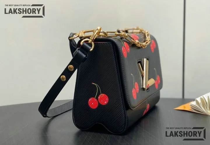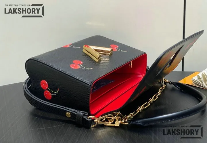 Louis Vuitton 1:1 Mirror Replica LV x TM Twist MM Murakami Cherry Black 23CM/9.1IN