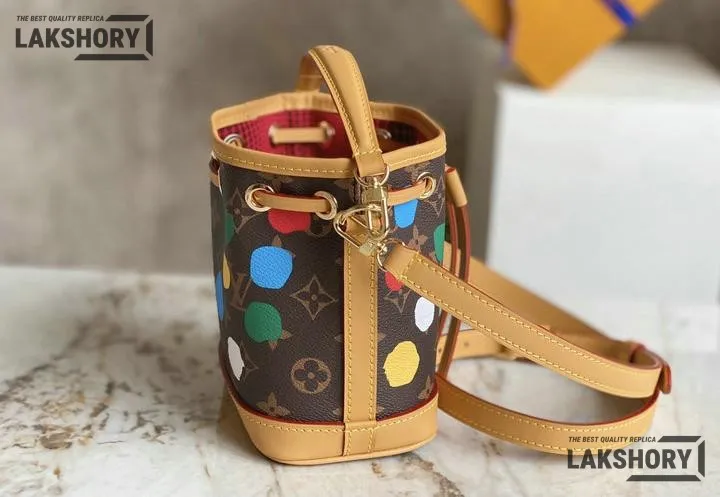 Louis Vuitton 1:1 Mirror Replica LV X YK Monogram Dots Nano Noe Multicolor 16CM/6.3IN