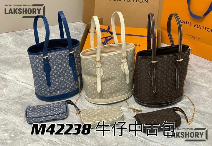 Louis Vuitton 1:1 Mirror Replica Mini Lin Monogram Bucket Bag 26CM/10.2IN
