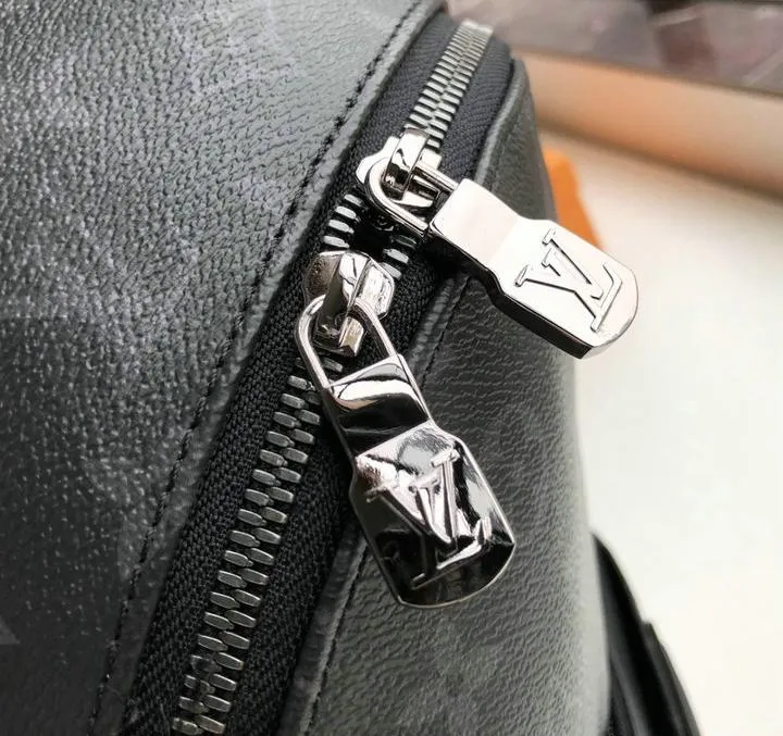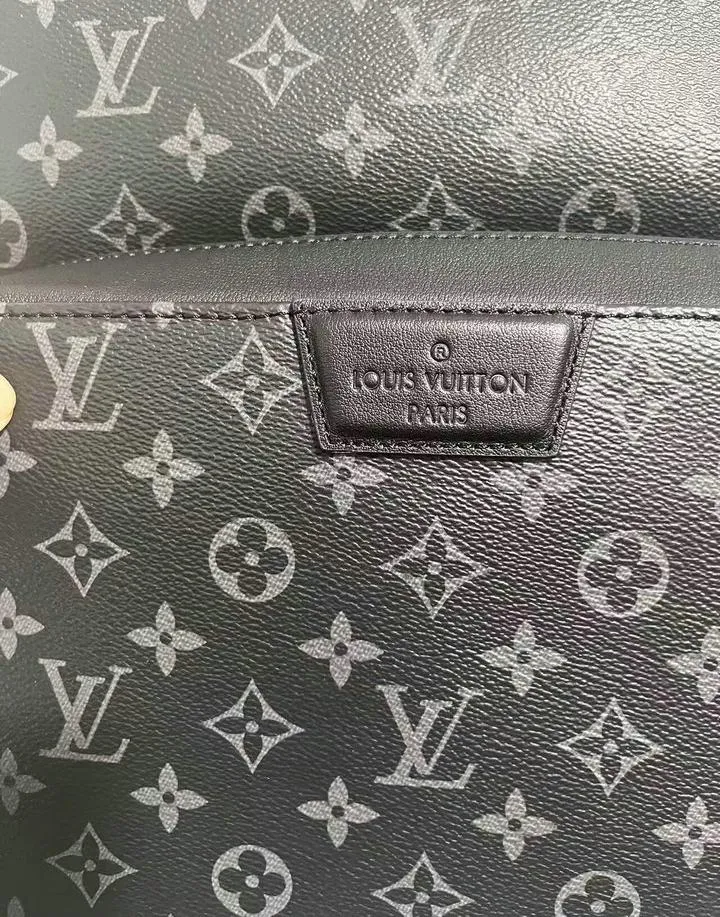 The replica utilizes high-grade coated canvas to emulate the supple Monogram Eclipse look, complemented by carefully crafted metal hardware for zippers and buckles. These materials ensure both durability and a premium feel, closely resembling the texture and finish of the original Louis Vuitton Discovery Backpack for an authentic experience.