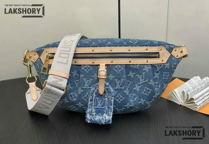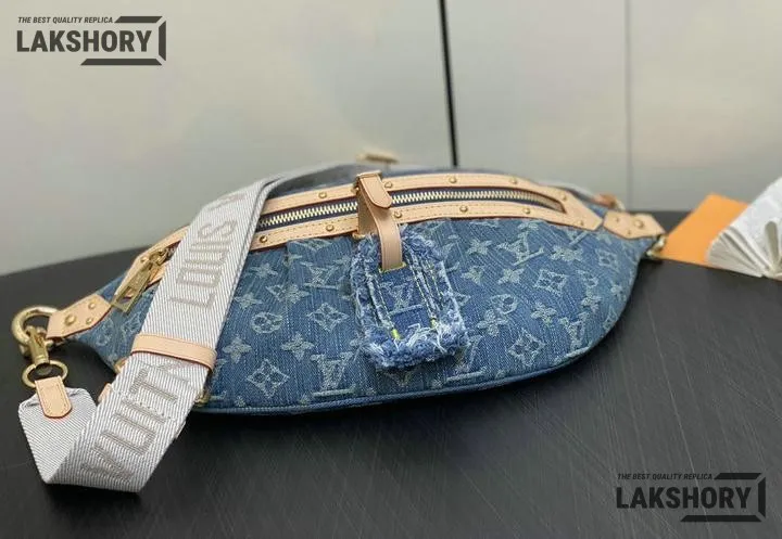Louis Vuitton 1:1 Mirror Replica Monogram Denim High Rise Bumbag Blue 38CM/15IN