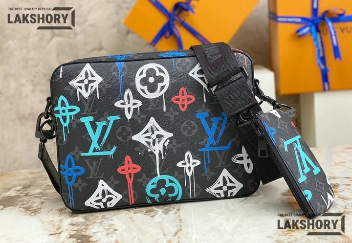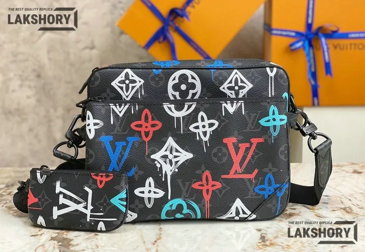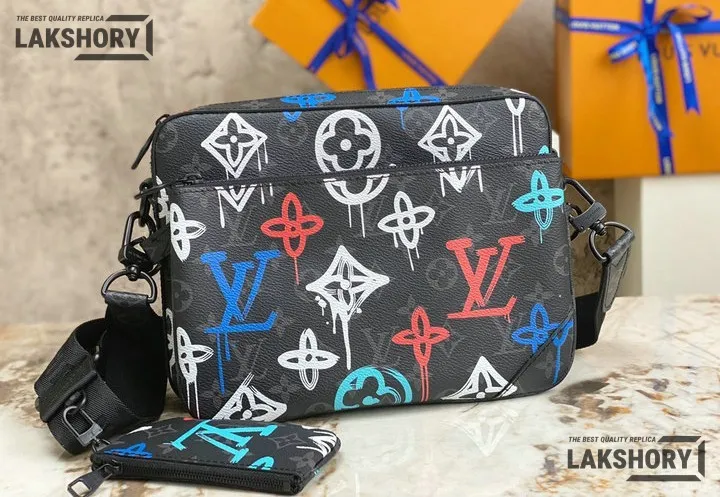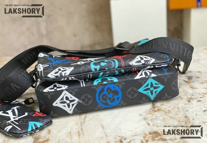 Louis Vuitton 1:1 Mirror Replica Monogram Eclipse LV Graffiti Trio Messenger Multicolor