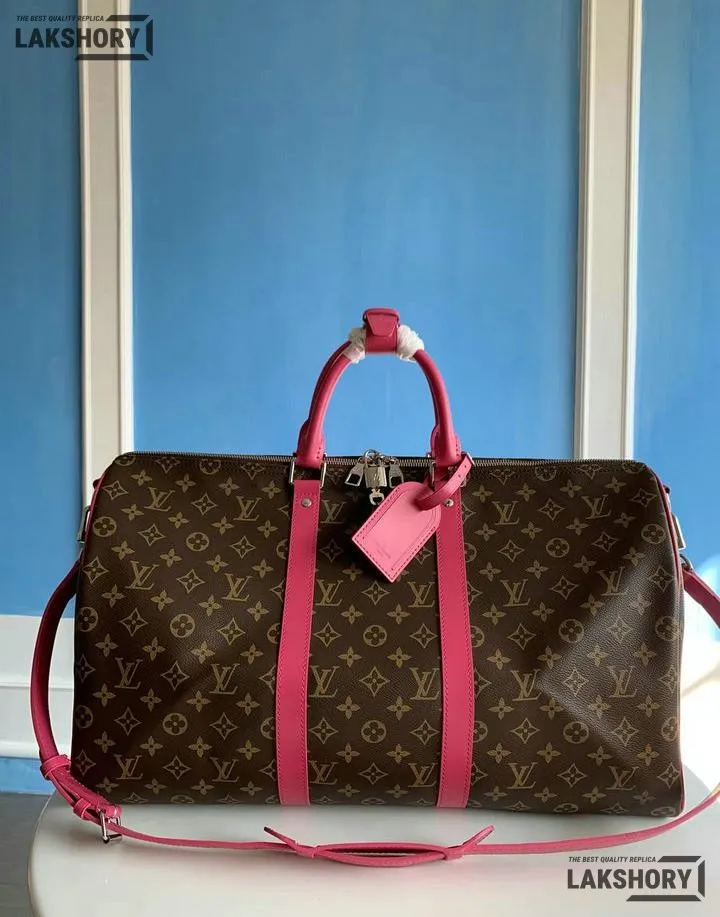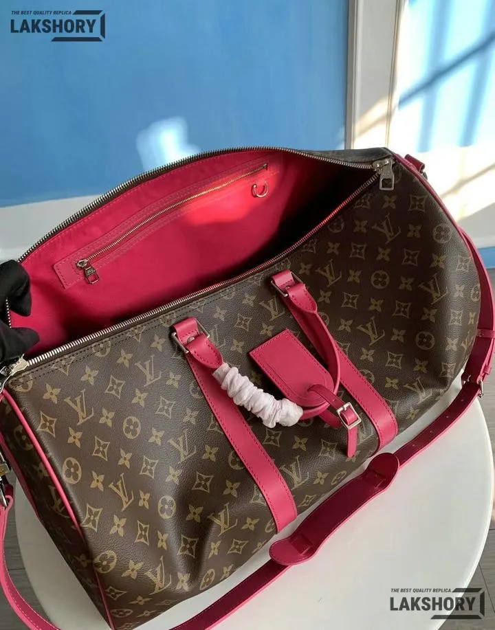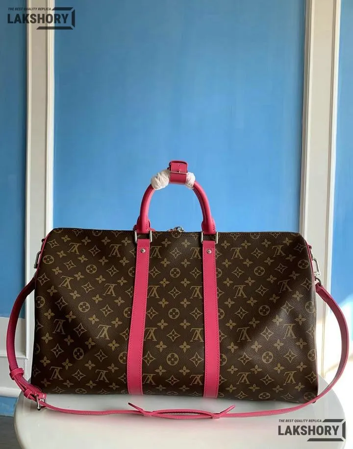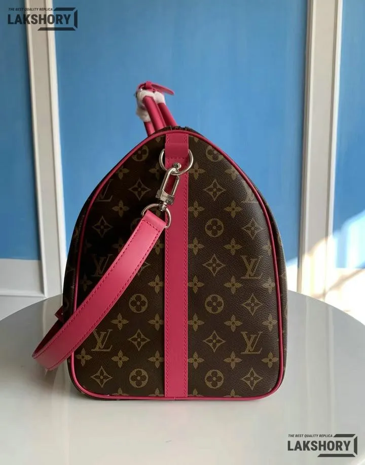 Louis Vuitton 1:1 Mirror Replica Monogram Macassar Keepall Bandouliere 50 Fuchsia 50CM/19.7IN
