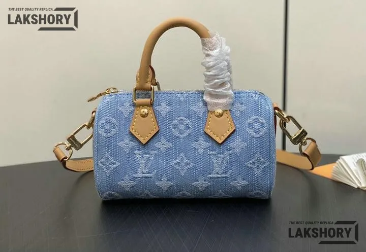 Louis Vuitton 1:1 Mirror Replica Nano Speedy Monogram Denim Sky Blue 16CM/6.3IN
