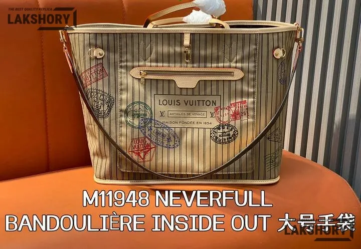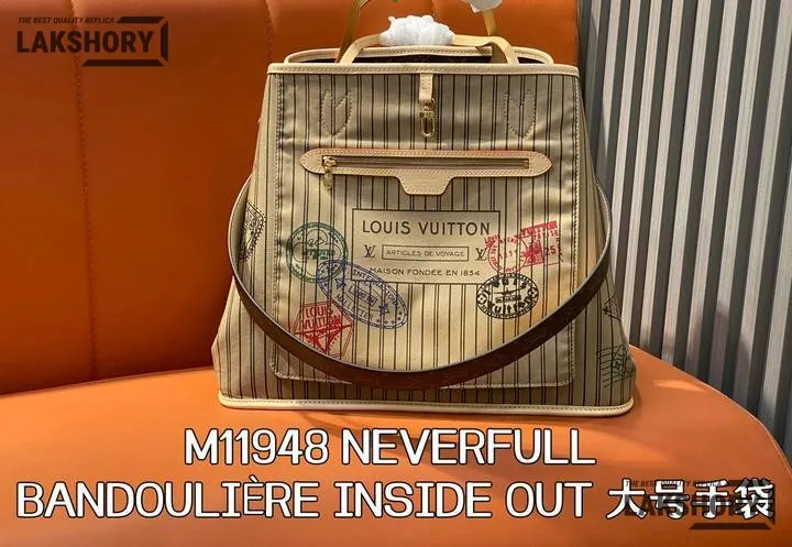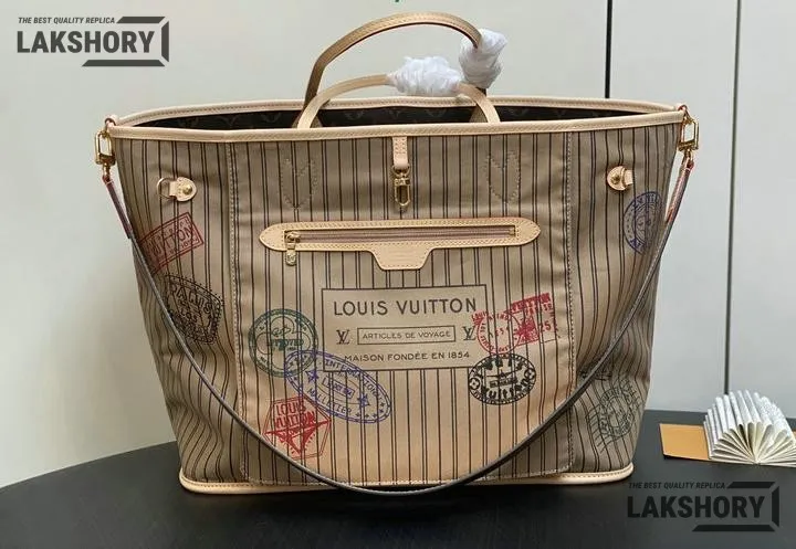 Louis Vuitton 1:1 Mirror Replica Neverfull GM Beige Inside Out Stripe Tote 39CM/15.4IN