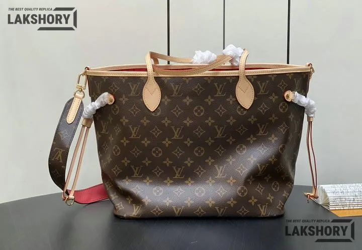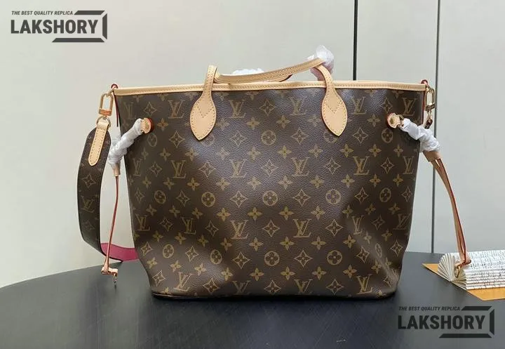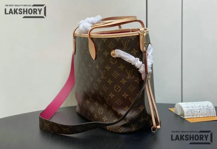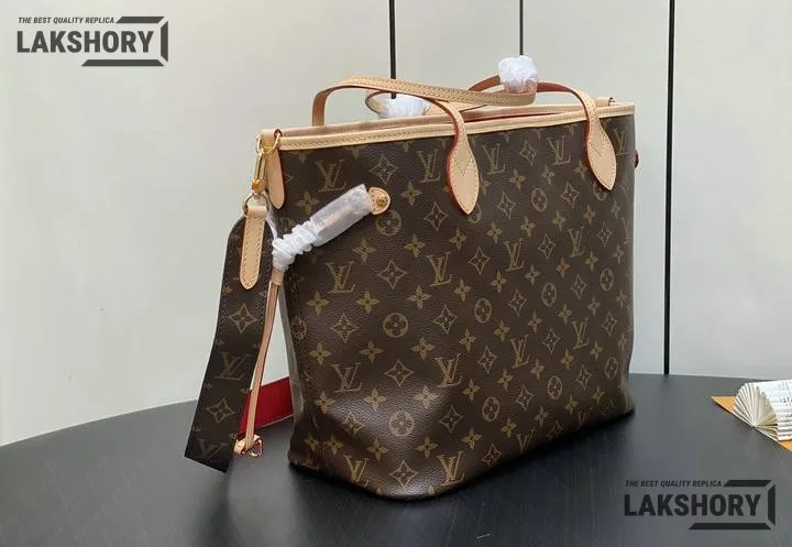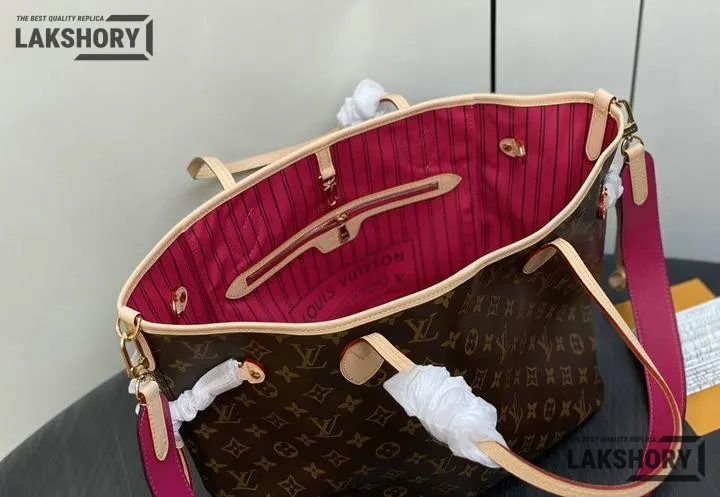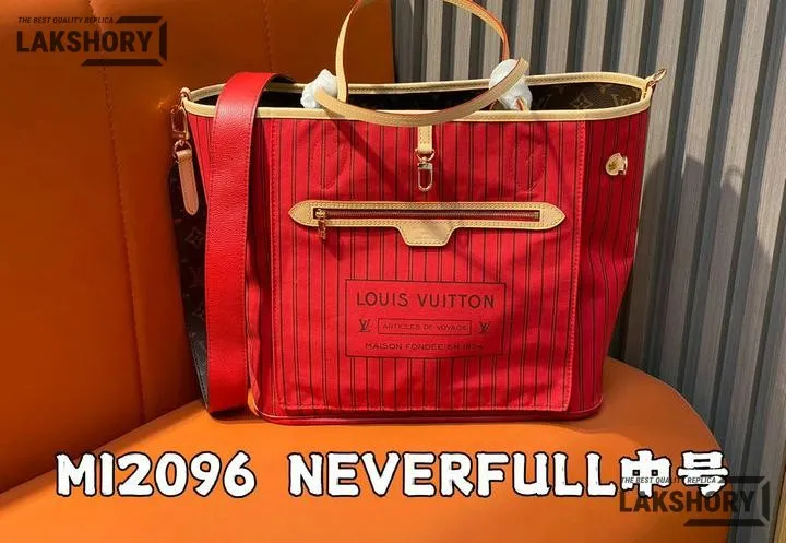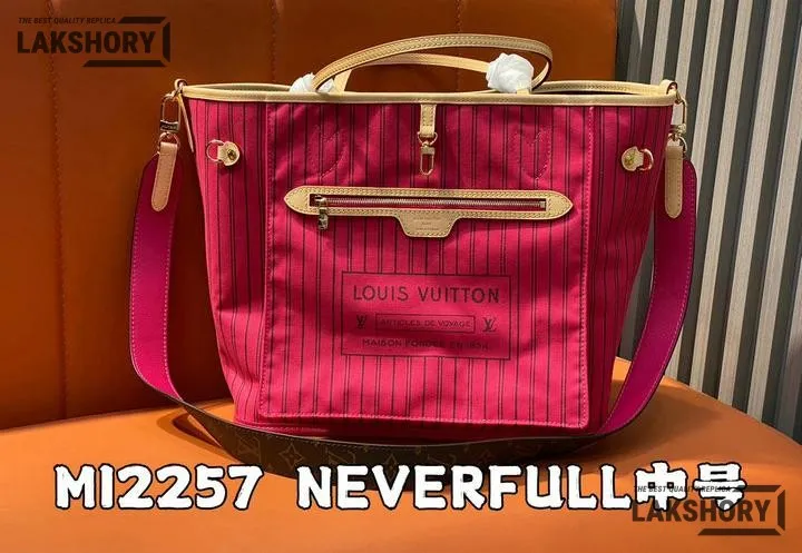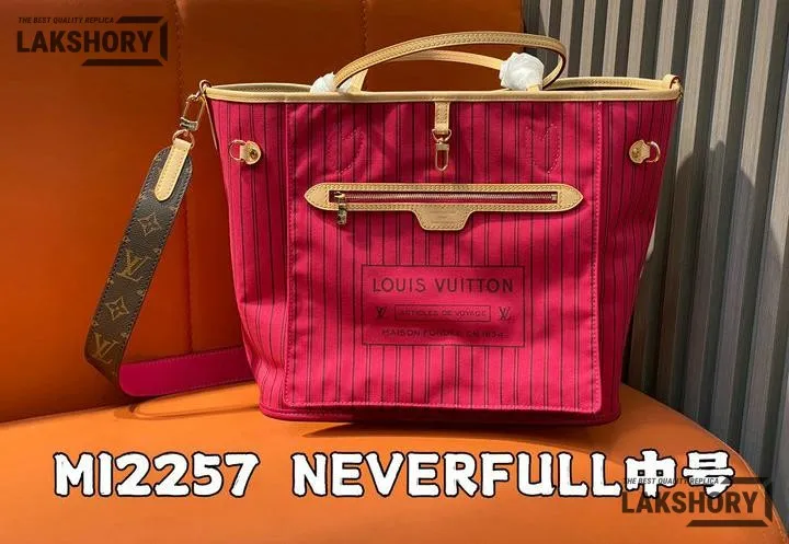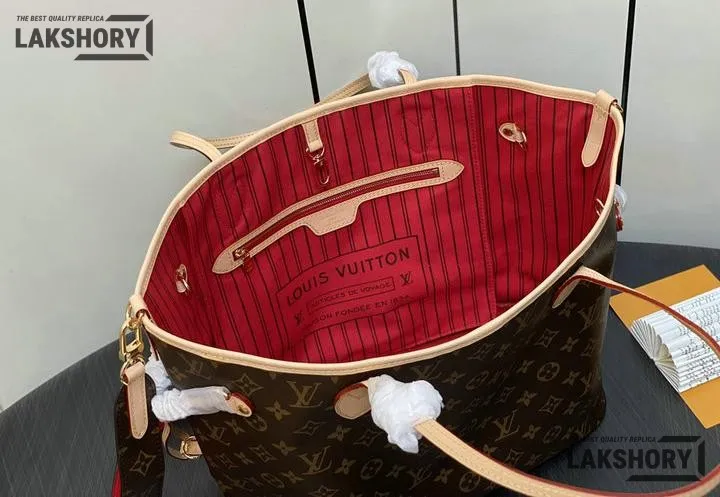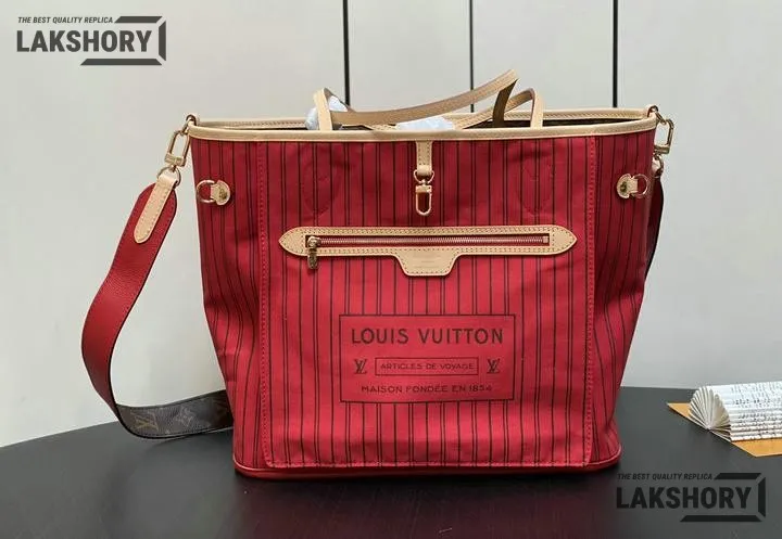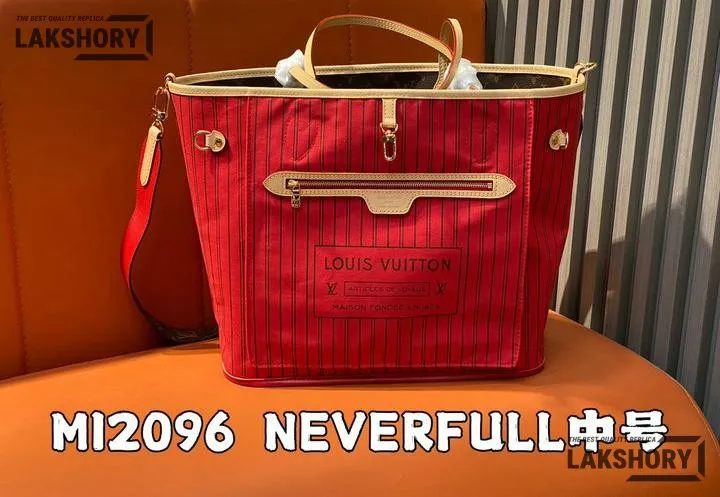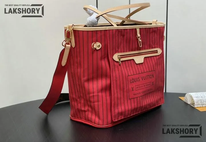 Louis Vuitton 1:1 Mirror Replica Neverfull MM Monogram Inside Out Stripe Tote 31CM/12.2IN