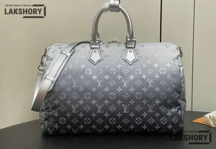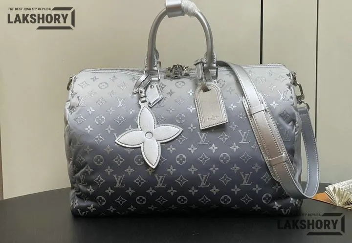 Louis Vuitton 1:1 Mirror Replica Nylon Frost Gradient LV Ski Keepall 45 Silver 45CM/17.7IN